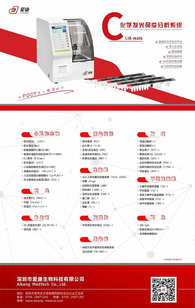 热烈庆祝爱康试剂自主研发的单人份化学发光试剂产品系列,获得抗缪勒氏管激素(AMH)、孕酮(Prog)、总β人绒毛膜促性腺激素(Total βHCG)和心型脂肪酸结合蛋白(H-FABP)4项医疗器械注册证。这是爱康试剂新推出的性激素类和心肌类的重要检测项目,有助于生殖系统功能和疾病、心梗的辅助诊断。